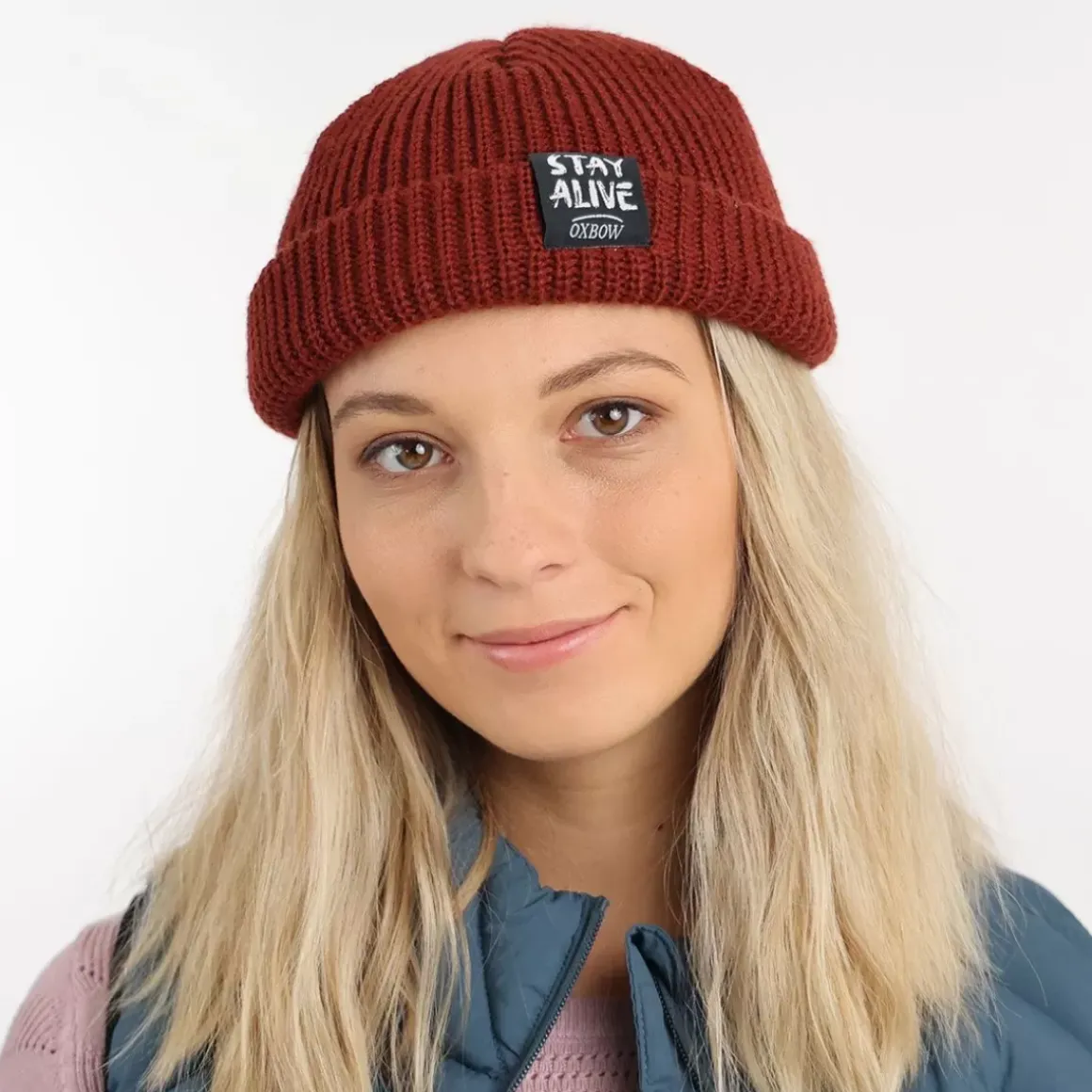 The ALVARADO beanie is a cuffed beanie with a cropped, fitted cut, featuring the STAY ALIVE mantra on its embroidered front label.