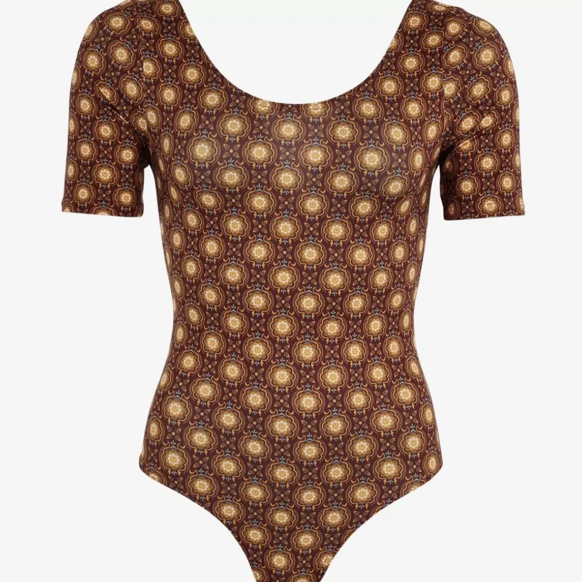 New for the season, the TRUDY bodysuit has short sleeves and a low back. MOZAIQUE print, the recycled polyester fabric used to make this product is French.