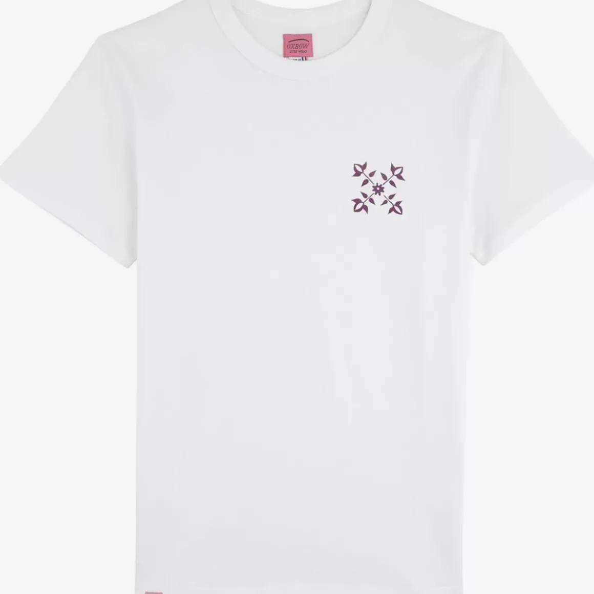 The iconic Oxbow t-shirt: made in France, a standard cut, a very heavy mesh of 250grs, the label on the shoulder, and a fourflower on the heart.