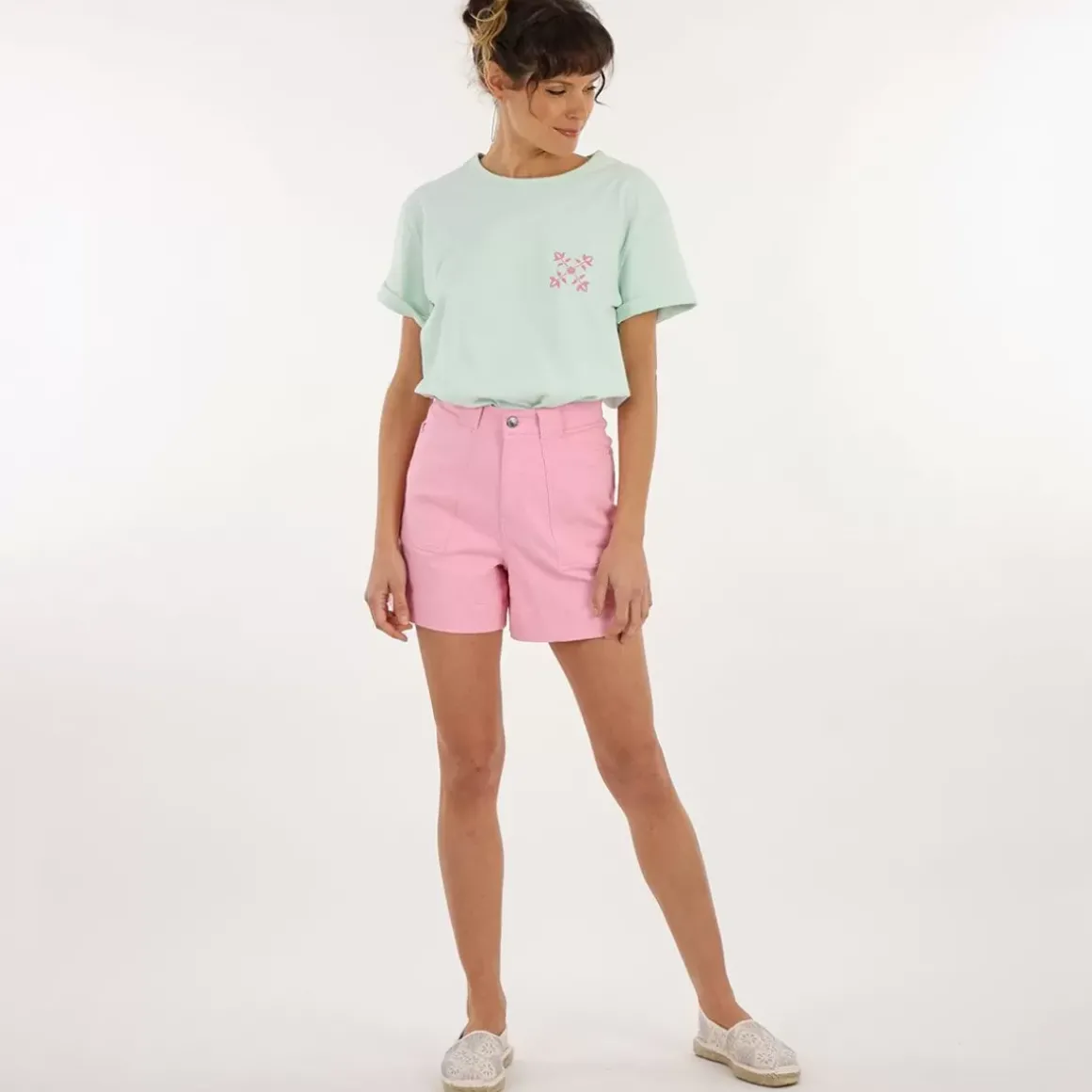 The iconic Oxbow t-shirt: made in France, a standard cut, a very heavy mesh of 250grs, the label on the shoulder, and a fourflower on the heart.