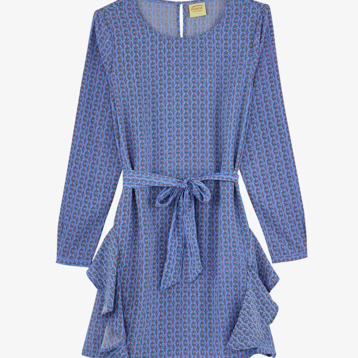 The ruffled DEVA dress is printed all over with the season’s patterns. Its short, straight cut, long sleeves and matching ribbon belt make it a must-have this season.