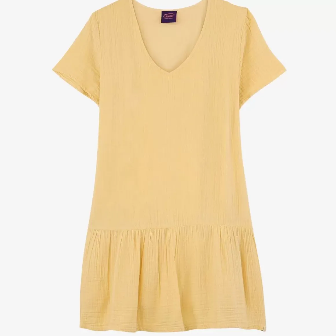 This cotton-gauze dress is garment-dyed for a washed-out effect. With its oversized cut, it has short sleeves and a V-neck.