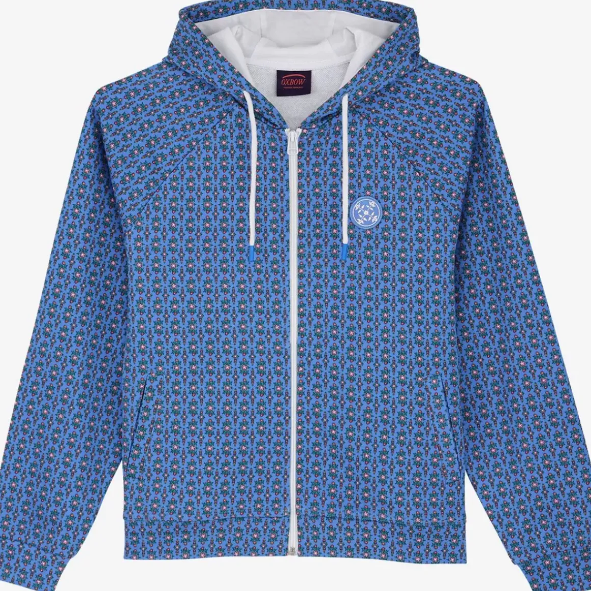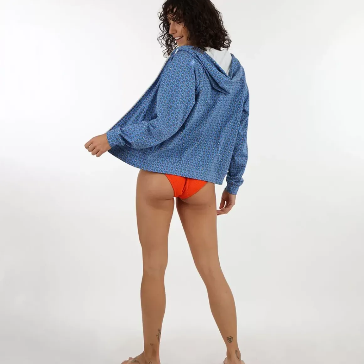 The SIMONA is a zippered hoodie with an exclusive allover print from the collection. With