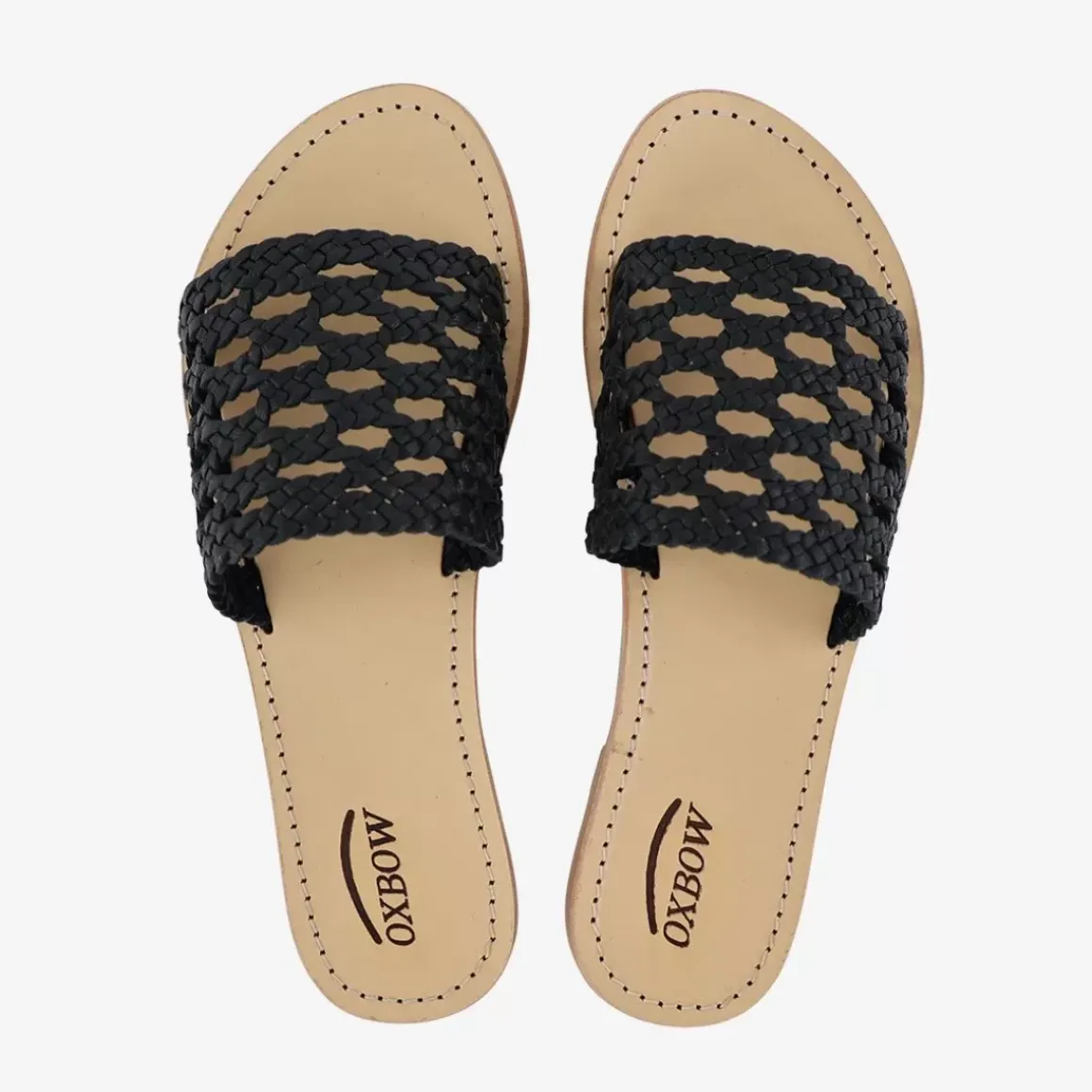Braided flat sandals, the VAPITO have an embossed logo on the leather sole.