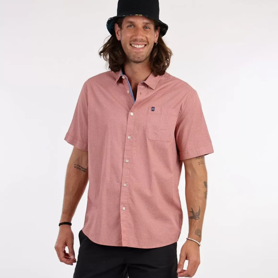 The CHACKS shirt has microprinted patterns for the fun side. On the chest, you can find a patched pocket with the print of the shirt.