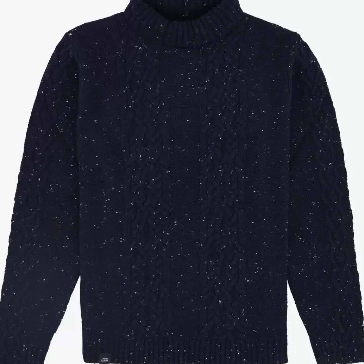 The POLGER sweater is a turtleneck sweater with cables on the body and sleeves. We can’t do more winter!