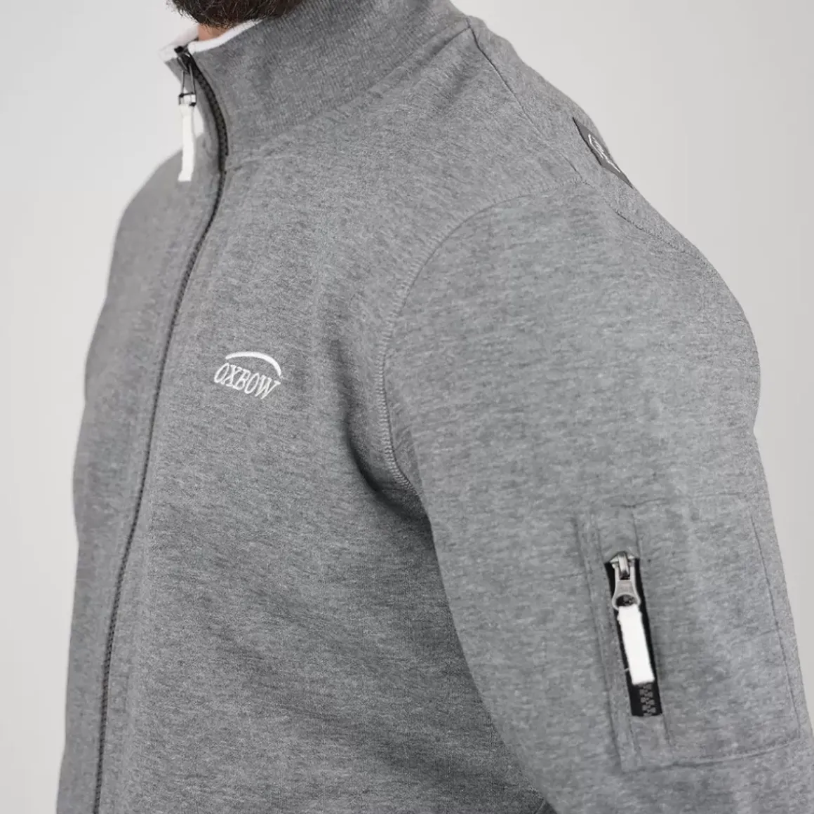 Cotton straight fit zippered sweatshirt.
