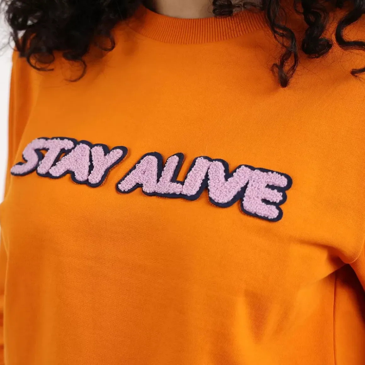 Wording flocked on sweatshirt