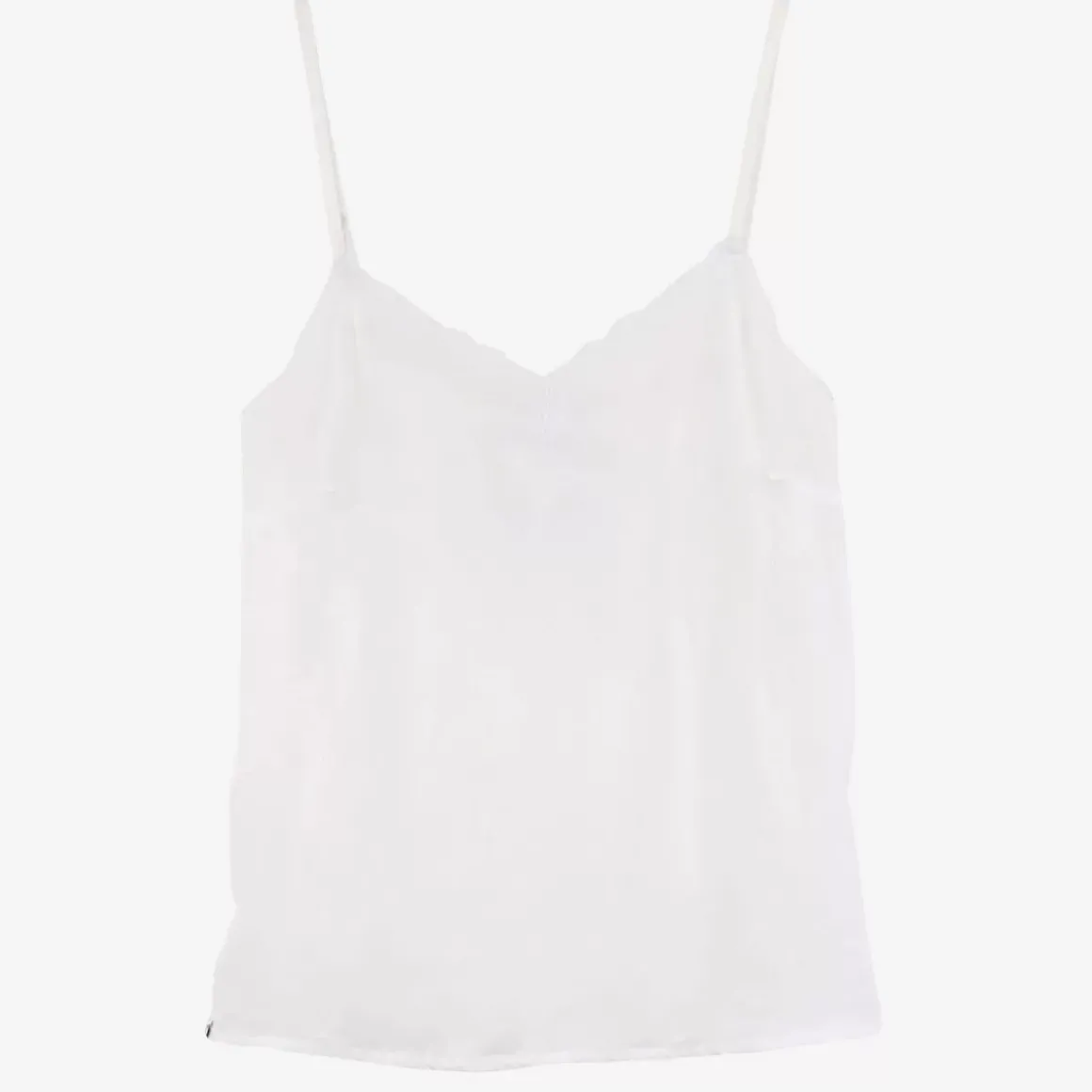The CARMEN top in viscose has thin straps, an embroidered neckline and a straight cut. This top will inevitably find its place in your wardrobe.