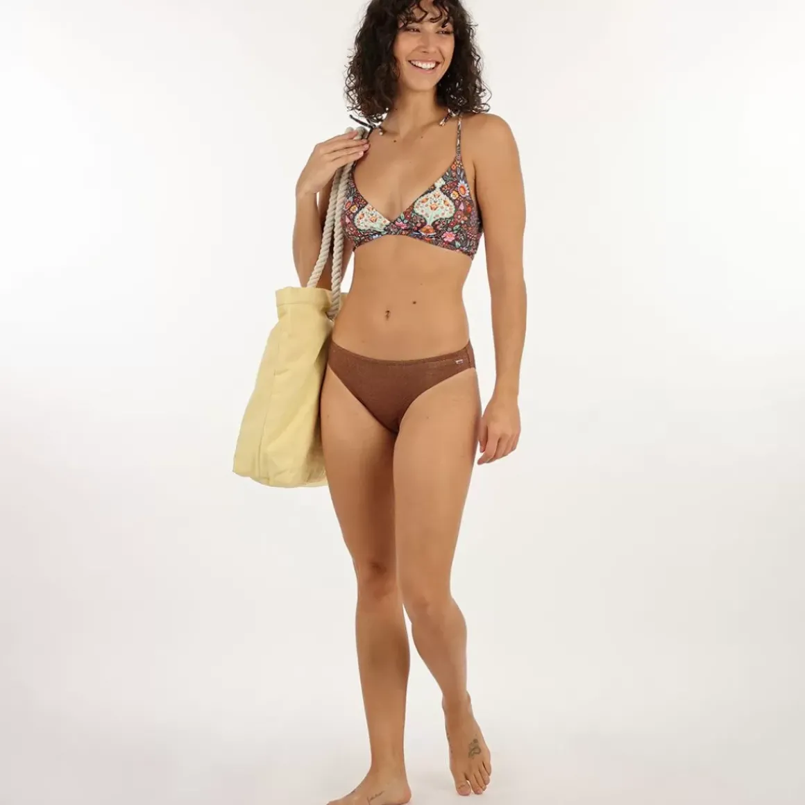The MIMI is a bikini bottom gathered in the back, with a pleat to flatter the silhouette.