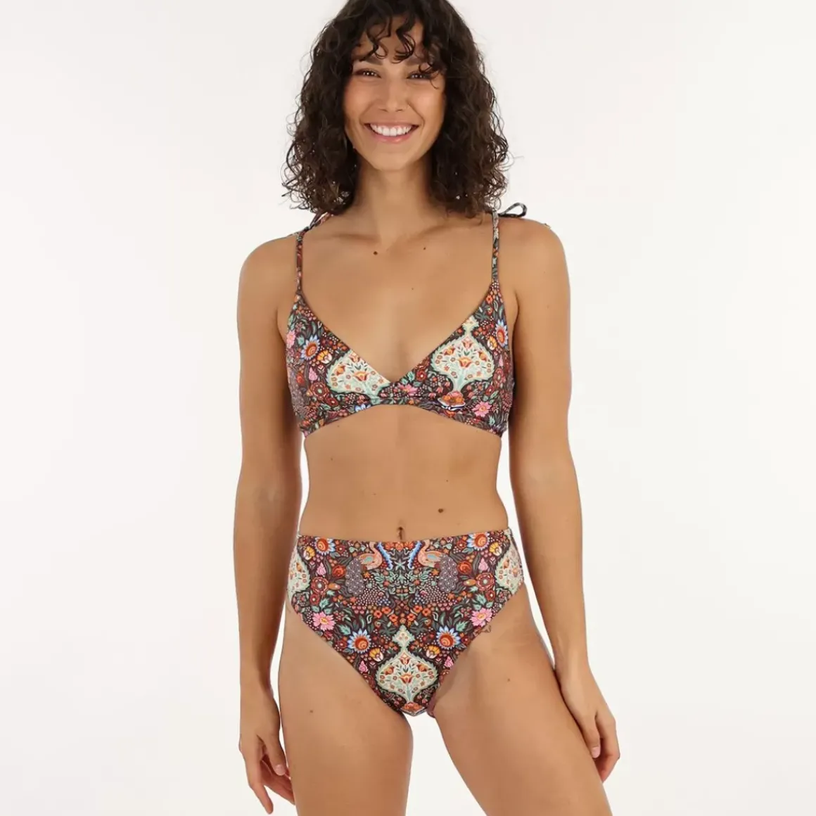Triangle cut revisited by a crossing at the front, the MARINELLA bikini top is made from a recycled French material. Its adjustable links allow several positions of straps.