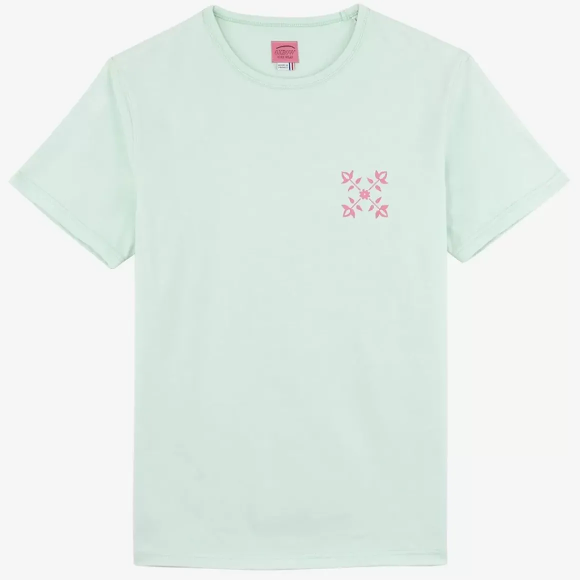 The iconic Oxbow t-shirt: made in France, a standard cut, a very heavy mesh of 250grs, the label on the shoulder, and a fourflower on the heart.