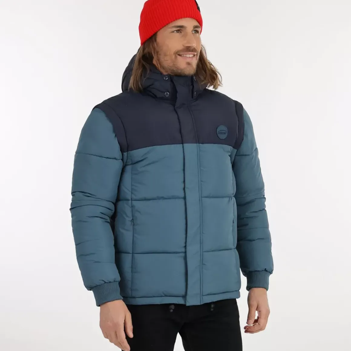 With its tone-on-tone colors, the JOE down jacket has Sorona padding for more breathability and warmth. The hood and sleeves are removable, to adapt to all weather conditions.