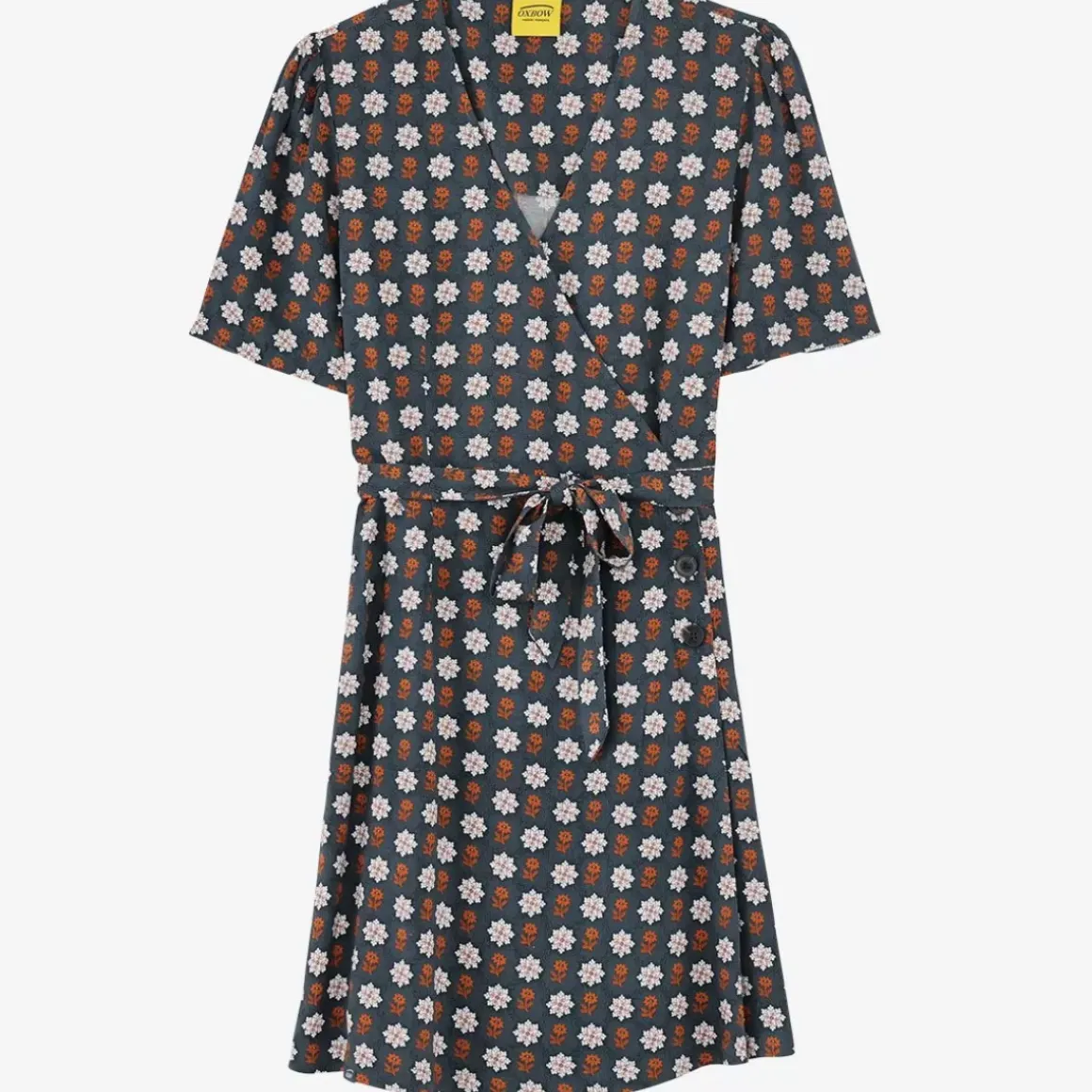 Printed short sleeves wrap dress