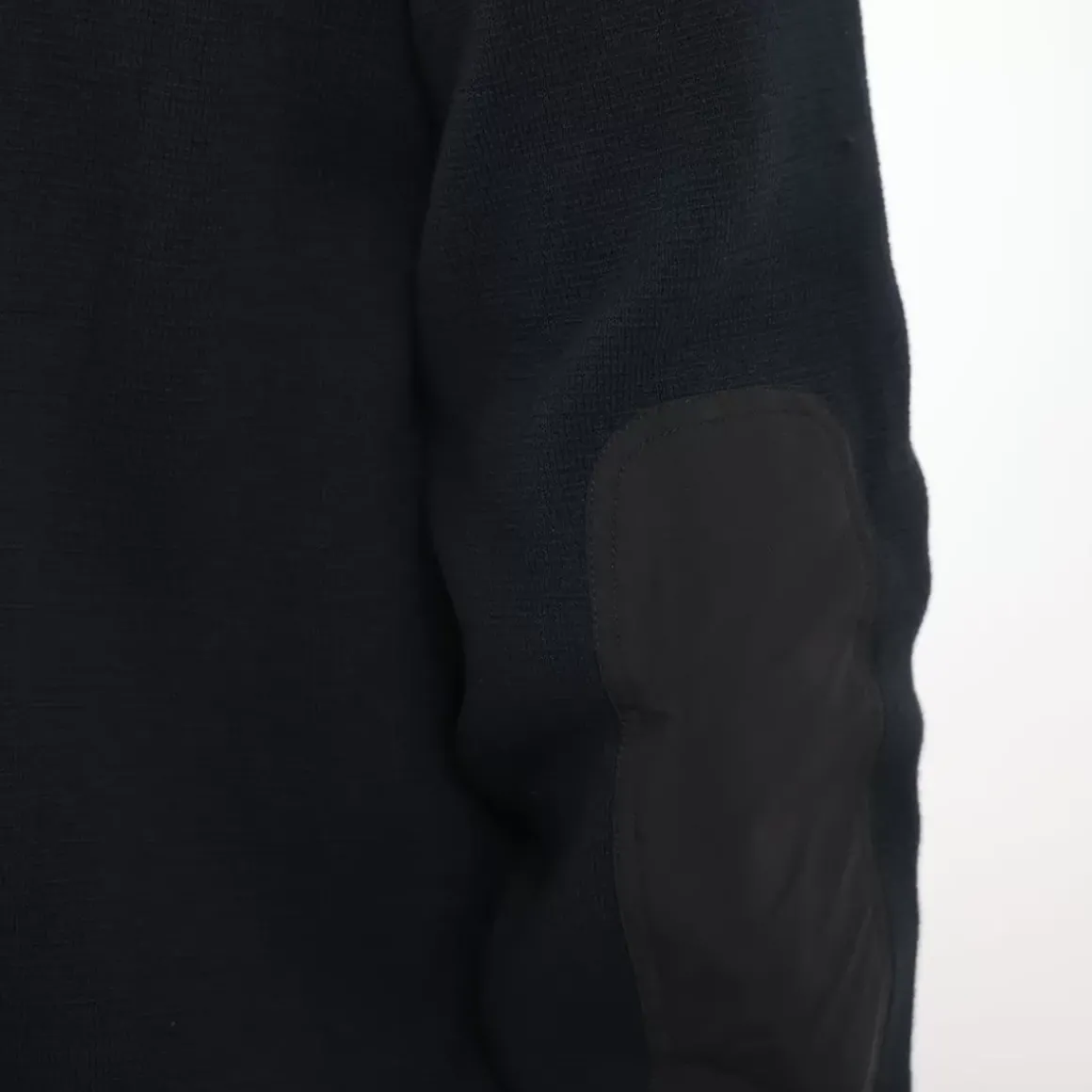 The SIEGER jacket is made from recycled materials and mixes materials, with a water-repellent material on the shoulders, and a knit on the rest of the body.