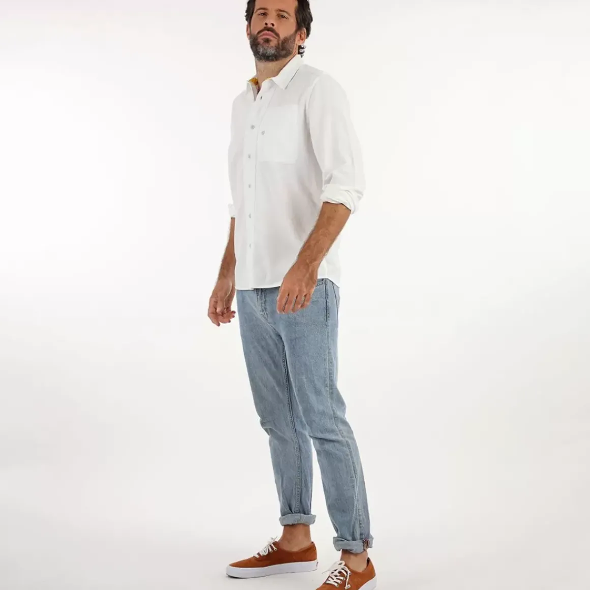 Long sleeves shirt, the CAZINA has fun details like printed inside cuffs or a buttoned vertical pocket.