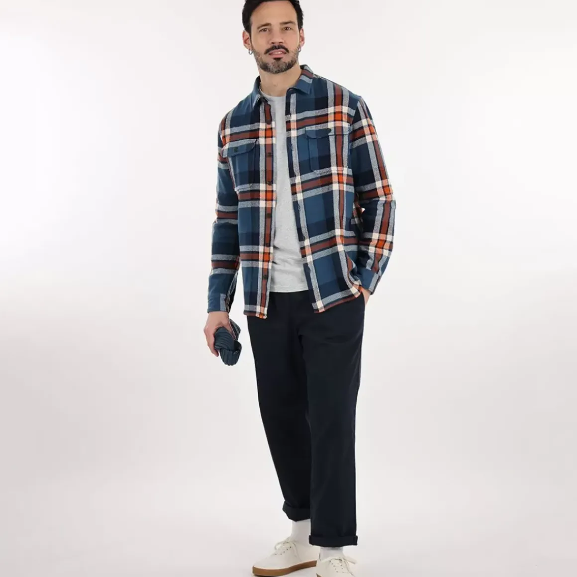 With its thick material (310g/m²), the CUSTA long-sleeved shirt with embroidered woven checks is perfect for facing winter in style.