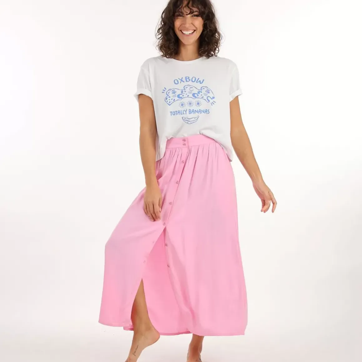 This straight cut skirt in crinkled viscose, light and fluid, is one of the pieces to have in your wardrobe. Buttoned in the front and elasticated in the back, this dress will adapt to all body types.