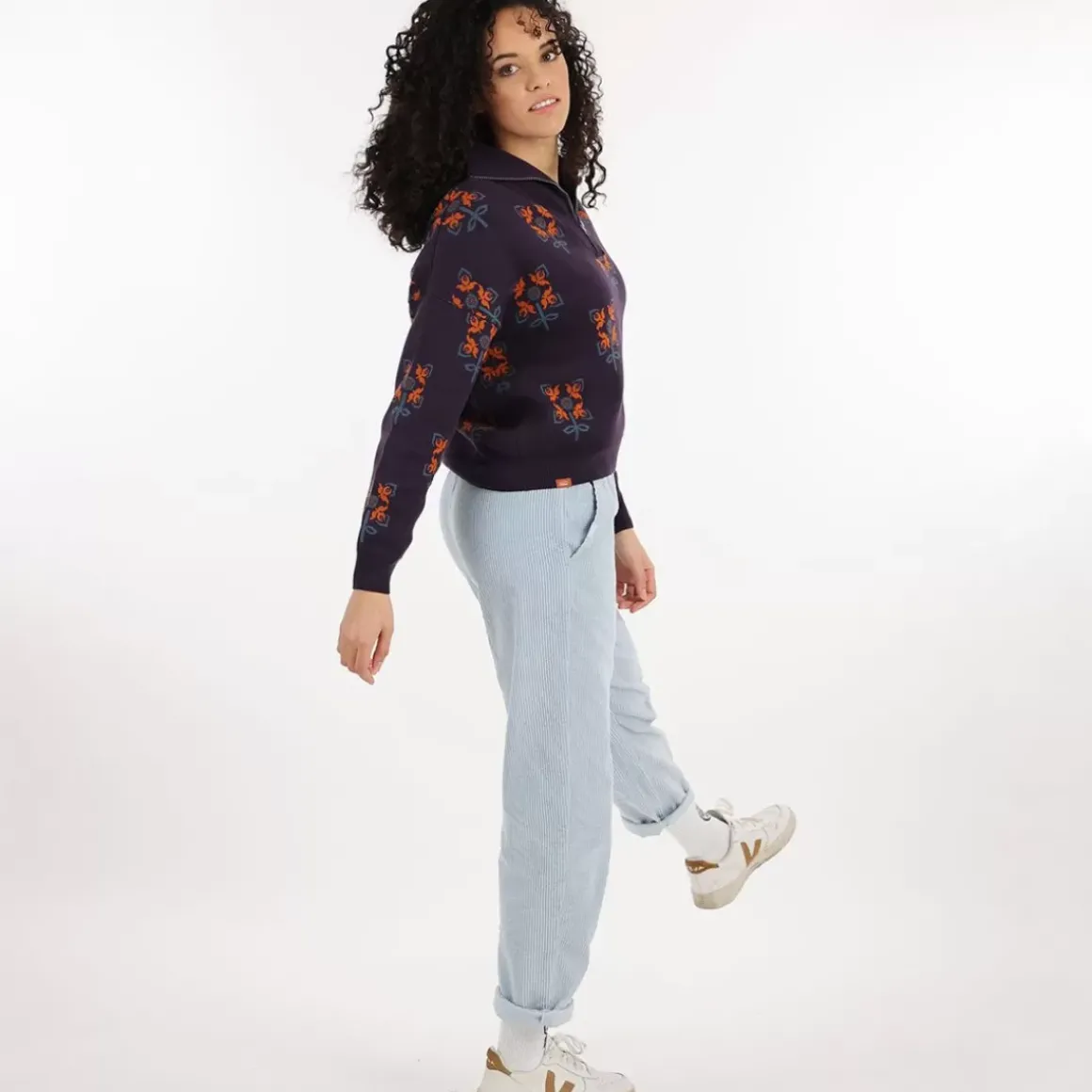 There’s nothing like this sweater to stay warm all winter long, with its loose fit and trucker collar.