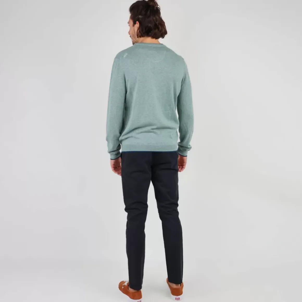 Cotton crew neck sweater.