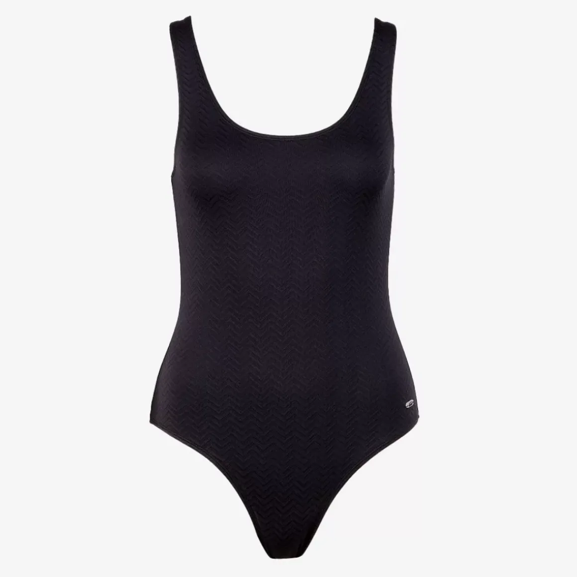 With its plunging neckline in the back and its cut that hugs the curves, the MORENA one-piece swimsuit is ideal for beach days. Its black jacquard material provides comfort and freedom of movement.