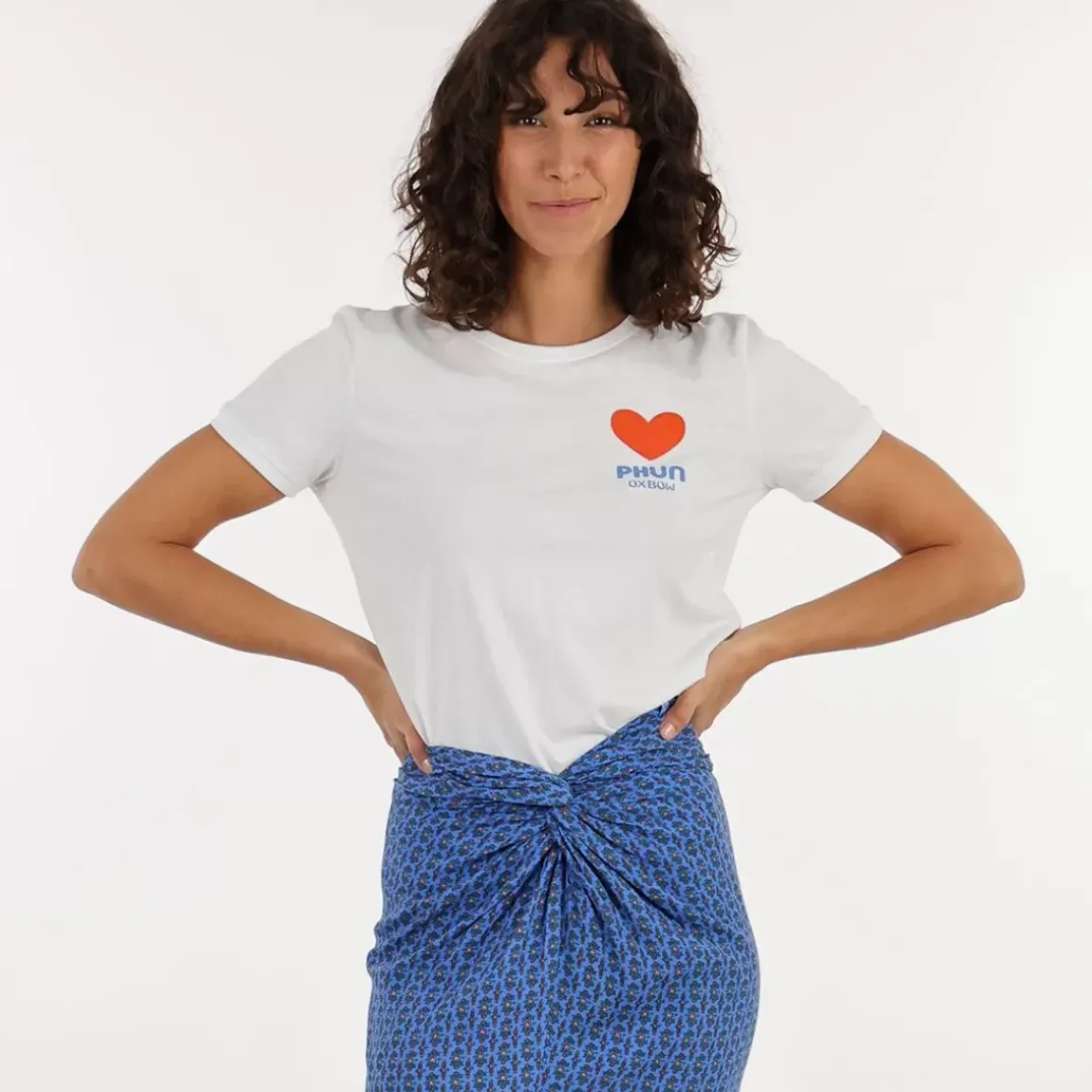 T-shirt in soft organic cotton, the TAYLOR is sober thanks to its solid colors, but has a slight touch of fun thanks to its printed pattern on the chest.