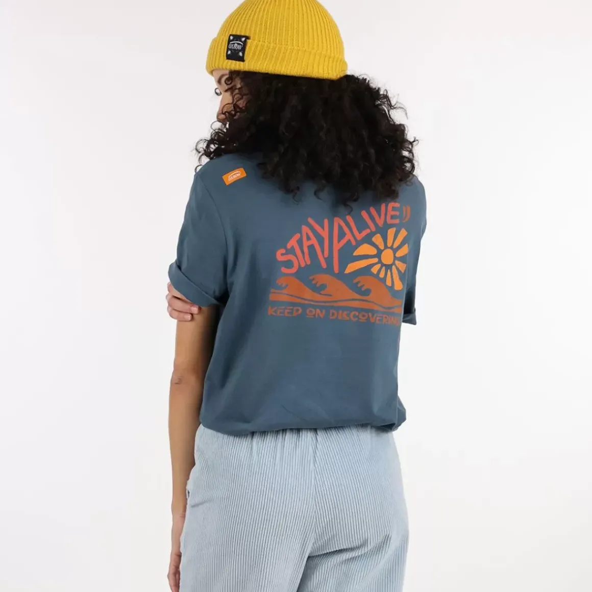 We love this original t-shirt with its rolled up sleeves. Wear it with wide, high-waisted pants and a pair of trainers for a casual look.