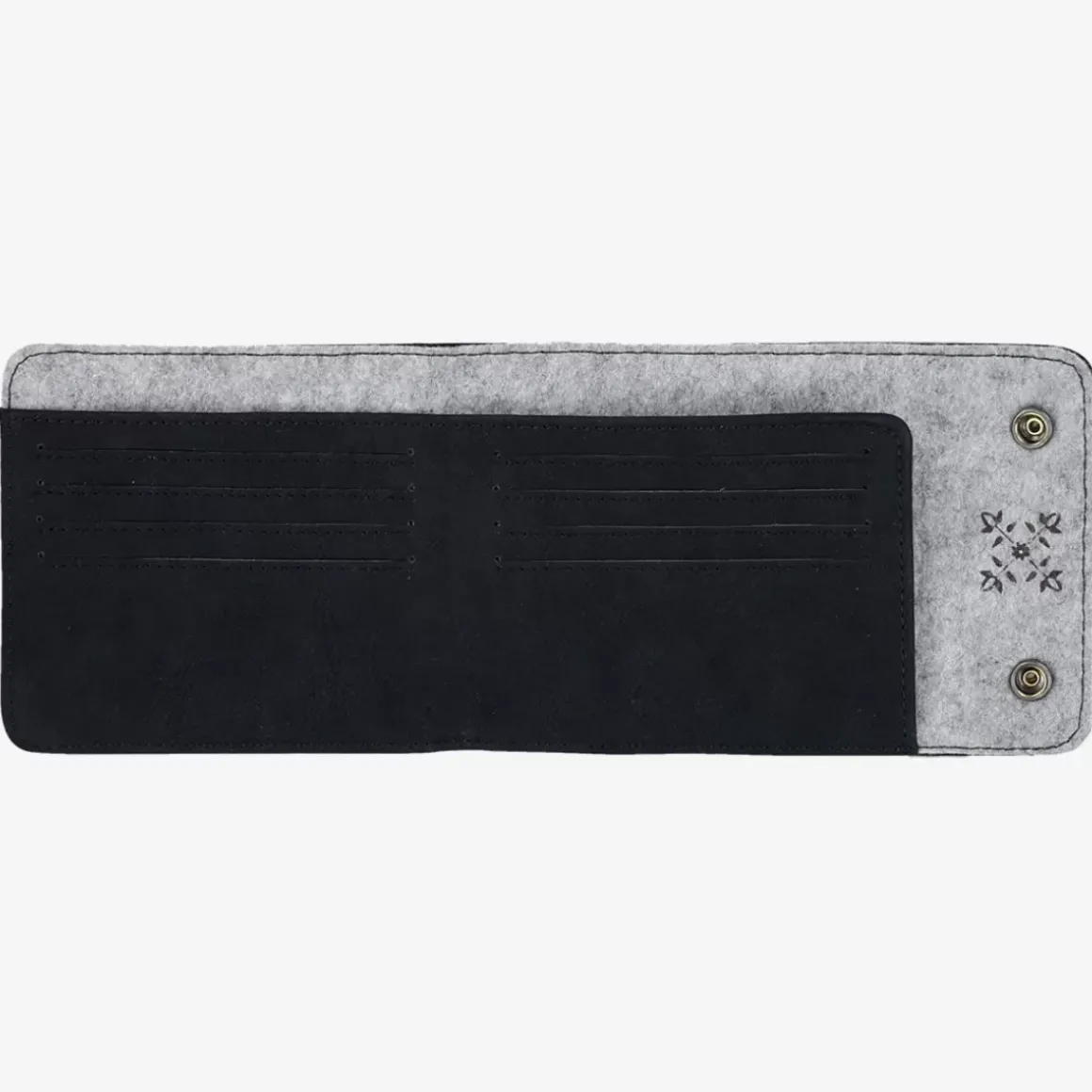 The FLAMI is a card holder with note compartment and felt lining. A snap button closure and an embossed and printed Oxbow logo complete this product.
